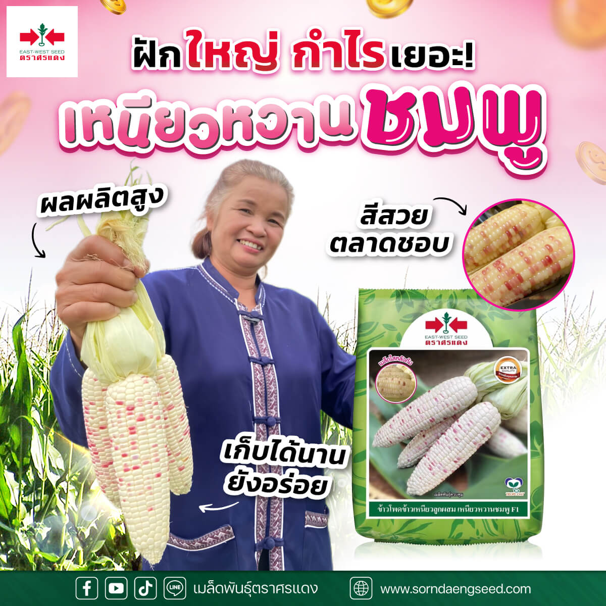 #เมล็ดพันธุ์ตราศรแดง #Eastwestseed #ข้าวโพด #ข้าวโพดเหนียวหวานชมพูF1