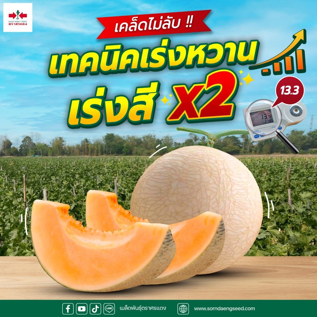 เคล็ดไม่ลับ !! เทคนิคเร่งหวาน เร่งสี x2 ปลูกแคนตาลูป