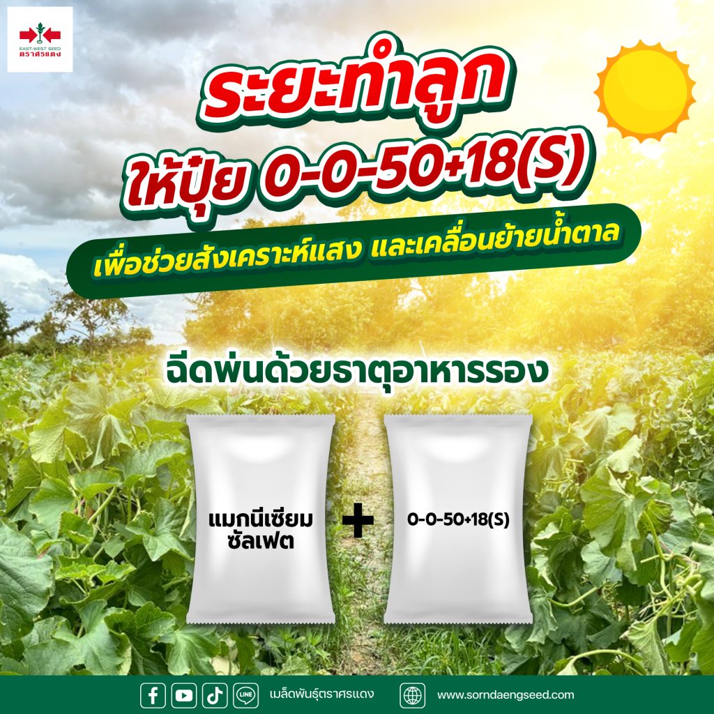 🔸 ระยะทำลูก ให้ปุ๋ย 0-0-50+18(S) + แมกนีเซียมซัลเฟต
